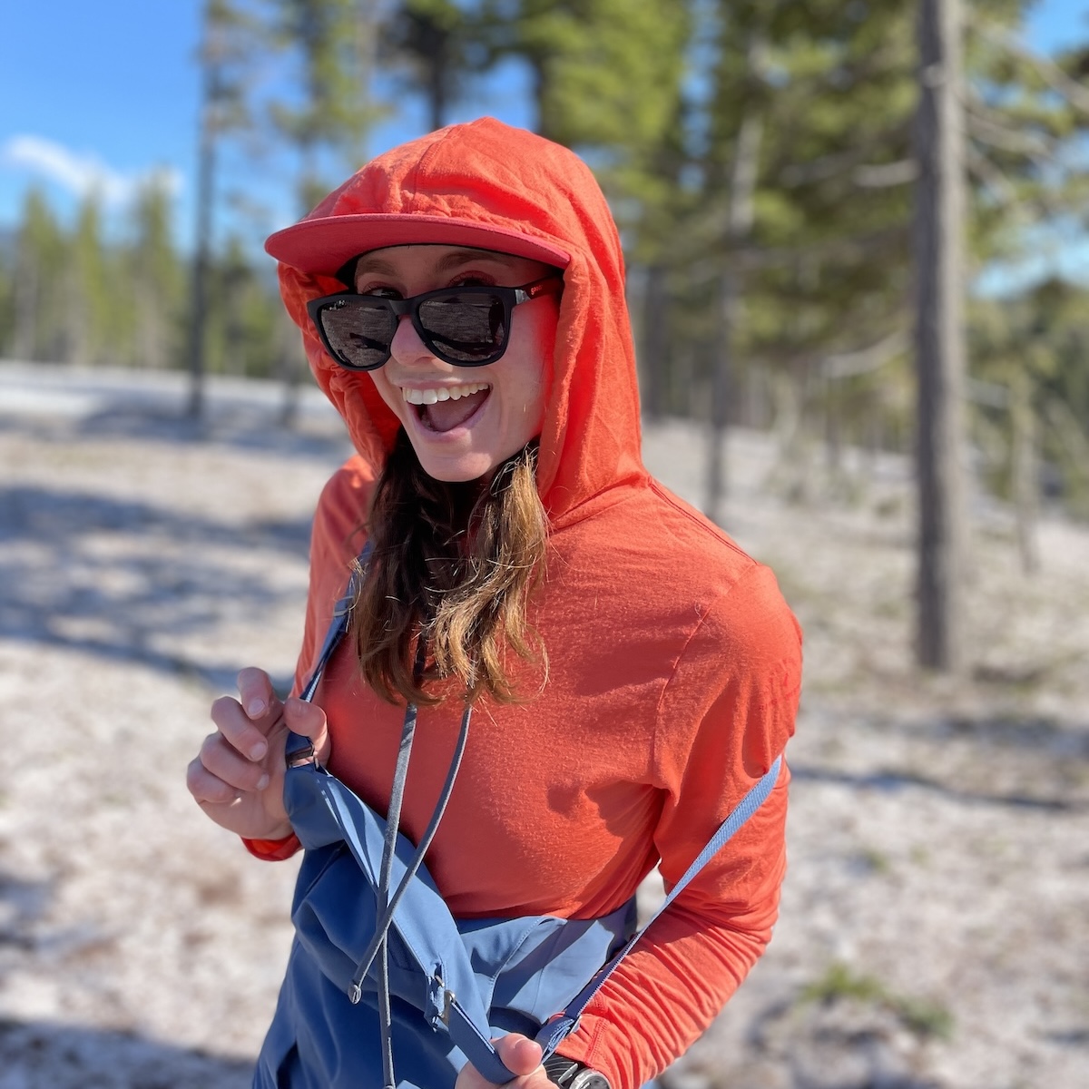 A: The number one quality I look for in a sun hoodie is lightweight, breathable construction. This is because I know that I will take my sun hoodie off if I get too hot and sweaty, undermining the sun protection I’m looking for. Comfort is essential to keeping the hoodie on all day. I also look for sweat-wicking materials, great hood design, and light colors to reflect UV rays in sunny conditions.